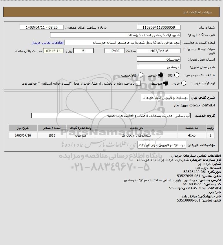 توضیحات خریدار:بهسازی و لایروبی انهار طویجات