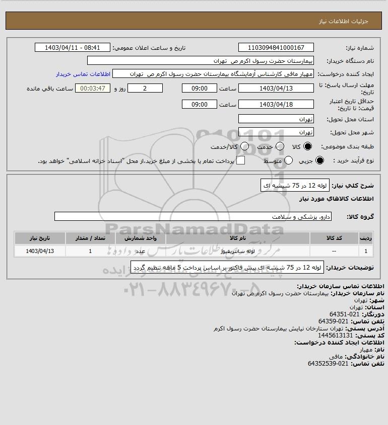 توضیحات خریدار:لوله 12 در 75 شیشه ای پیش فاکتور بر اساس پرداخت 5 ماهه تنظیم گردد