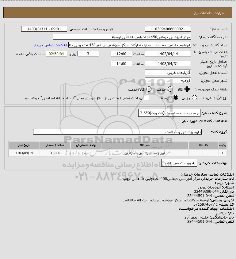 | 1 | -- | نوار چسب پزشکی یا جراحی | عدد | 30,000 | 1403/04/14 |