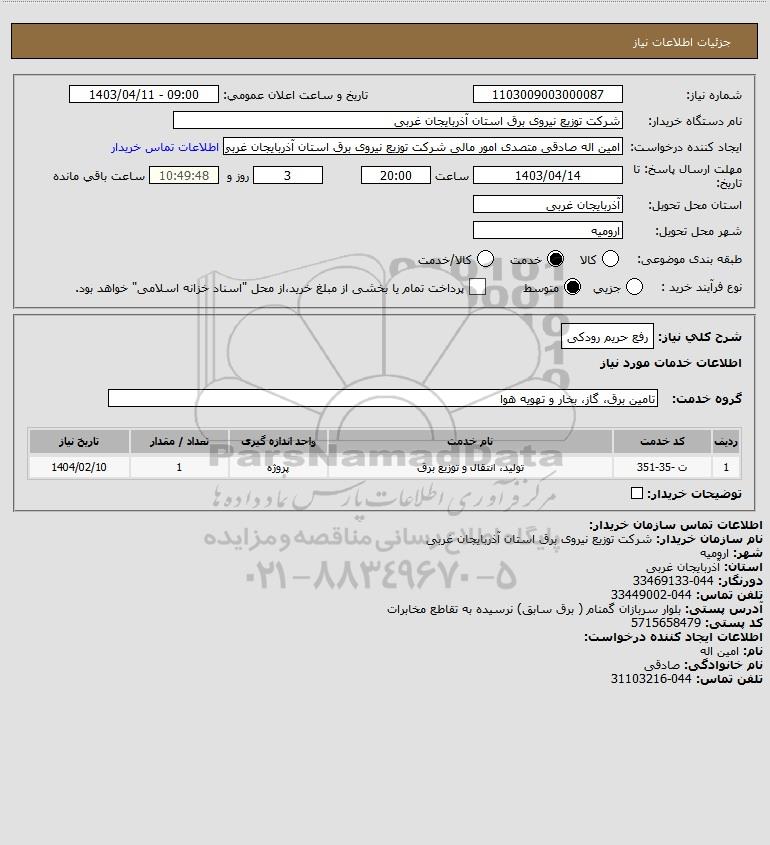 نام دستگاه خریدار:شرکت توزیع نیروی برق استان آذربایجان غربی