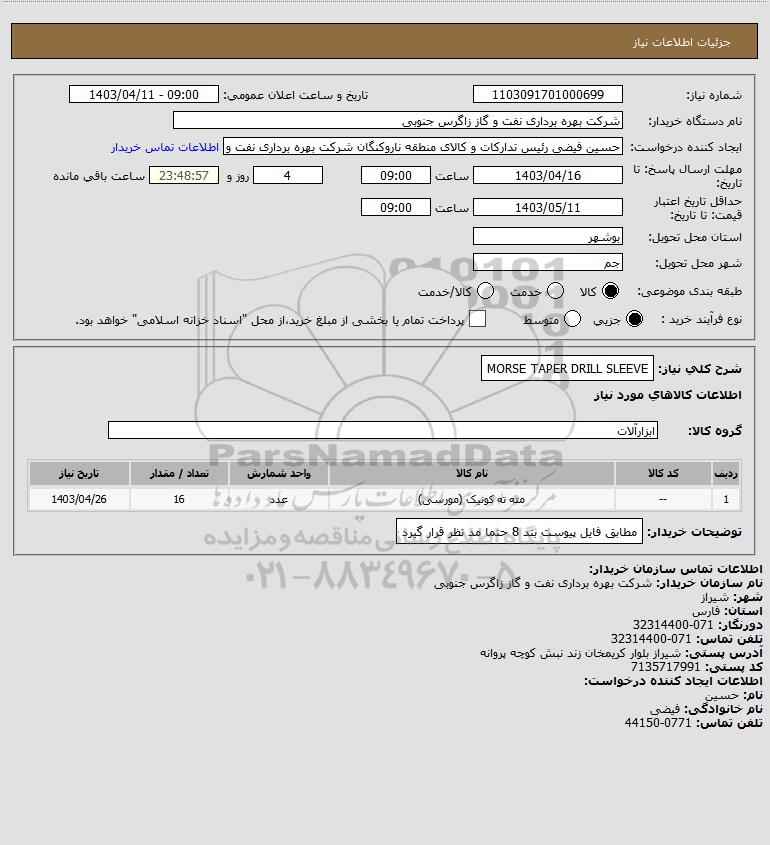 شرح کلی نیاز: MORSE TAPER DRILL SLEEVE