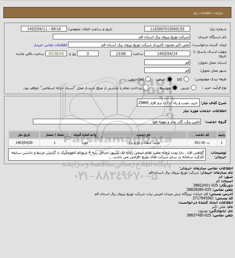 نام دستگاه خریدار:شرکت توزیع نیروی برق استان قم