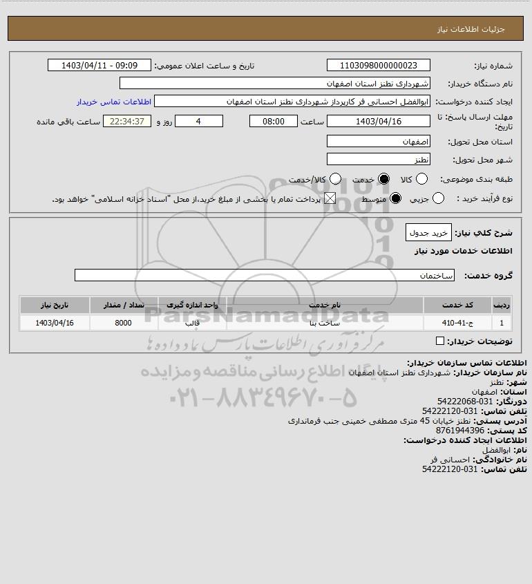 نام دستگاه خریدار:شهرداری نطنز استان اصفهان