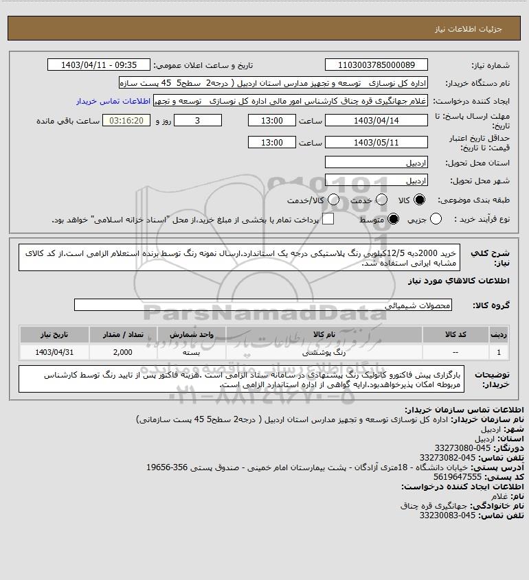 نام سازمان خریدار: اداره کل نوسازی توسعه و تجهیز مدارس استان اردبیل ( درجه2 سطح5 45 پست سازمانی)