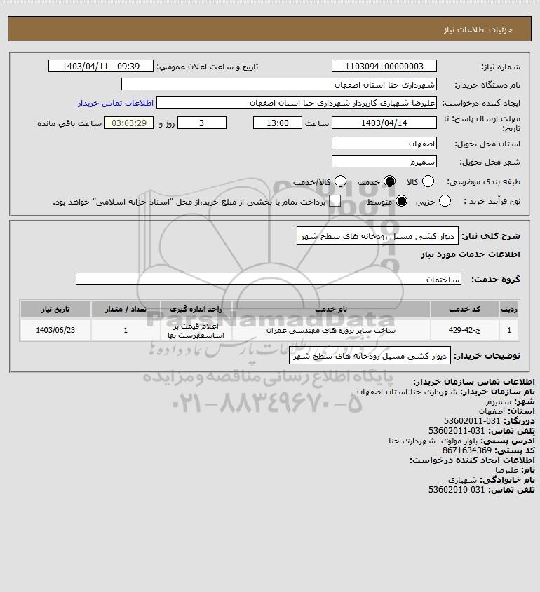 شرح کلی نیاز: دیوار کشی مسیل رودخانه های سطح شهر