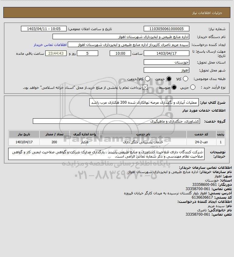نام دستگاه خریدار:اداره منابع طبیعی و ابخیزداری شهرستان اهواز
