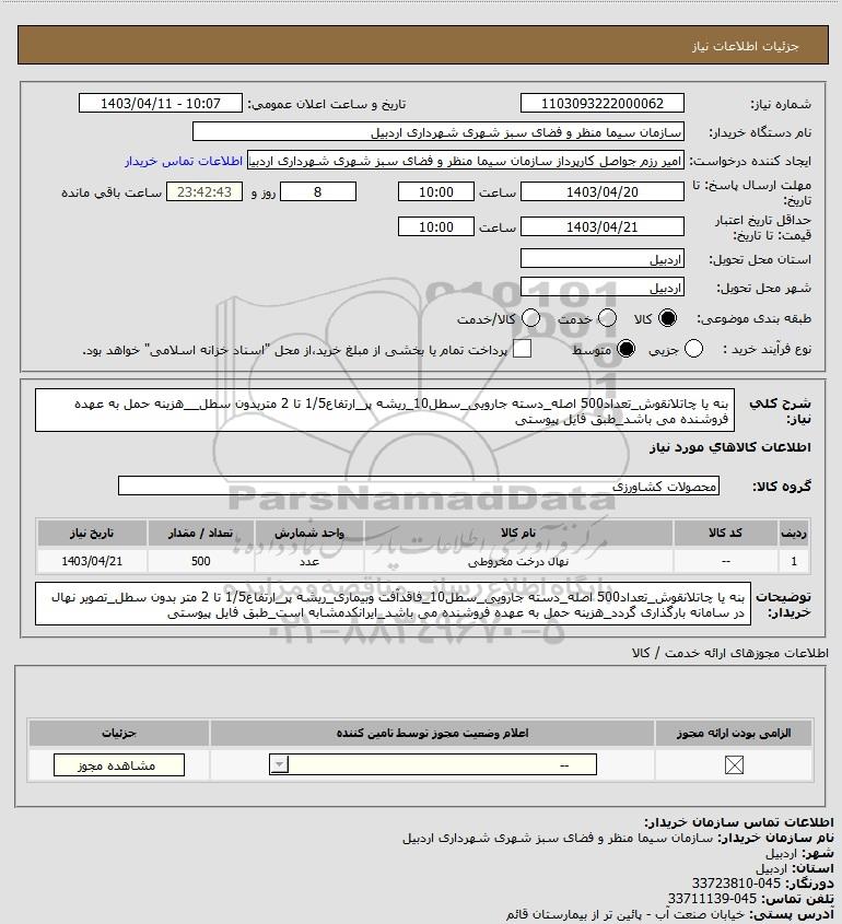 | 1 | -- | نهال درخت مخروطی | عدد | 500 | 1403/04/21 |