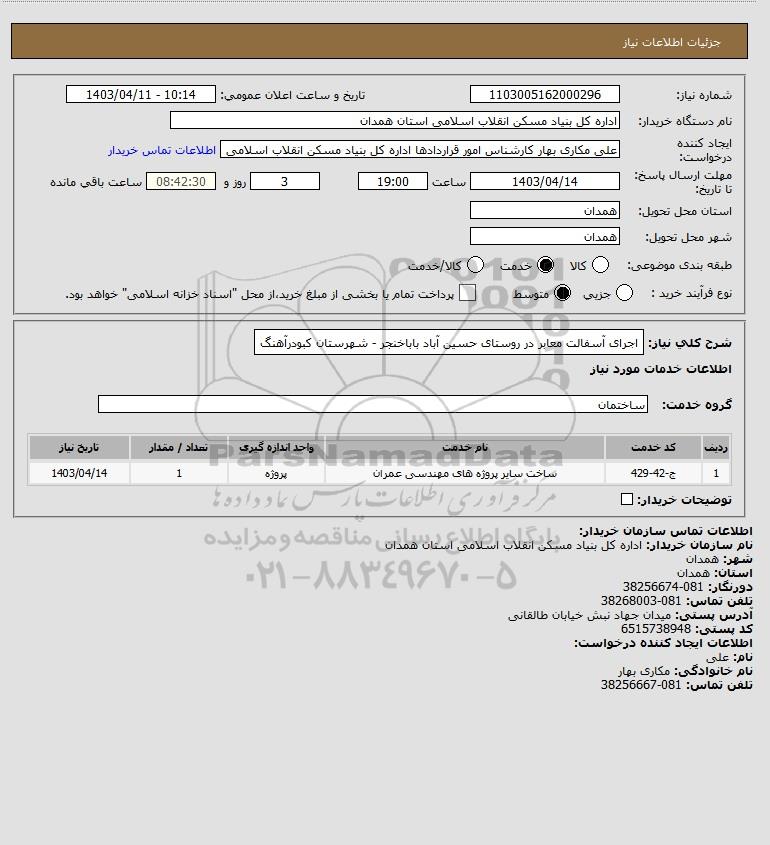 نام دستگاه خریدار:اداره کل بنیاد مسکن انقلاب اسلامی استان همدان