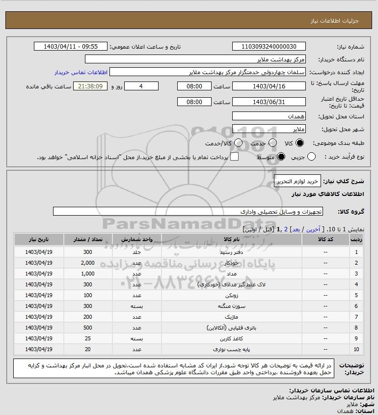 نام دستگاه خریدار:مرکز بهداشت ملایر