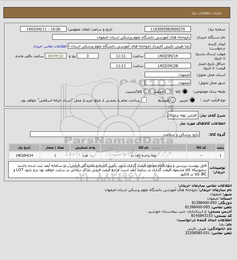 نام دستگاه خریدار:داروخانه های آموزشی دانشگاه علوم پزشکی استان اصفهان