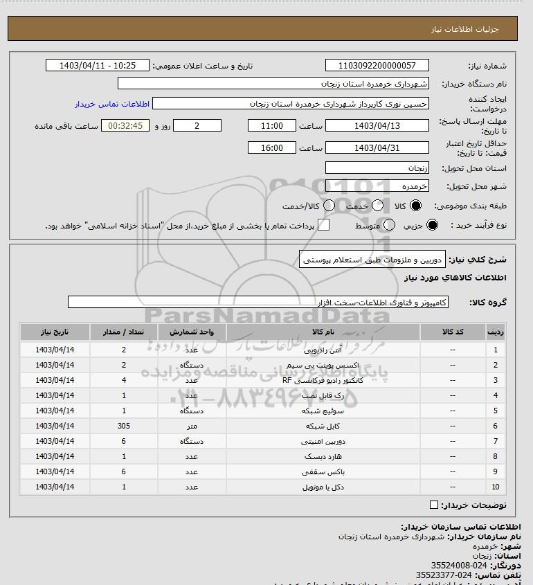 استعلام دوربین و ملزومات طبق استعلام پیوستی, استعلام دوربین و ملزومات طبق استعلام پیوستی