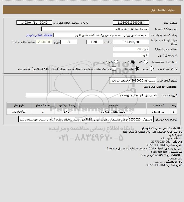 نام دستگاه خریدار:امور برق منطقه 2 شهر اهواز