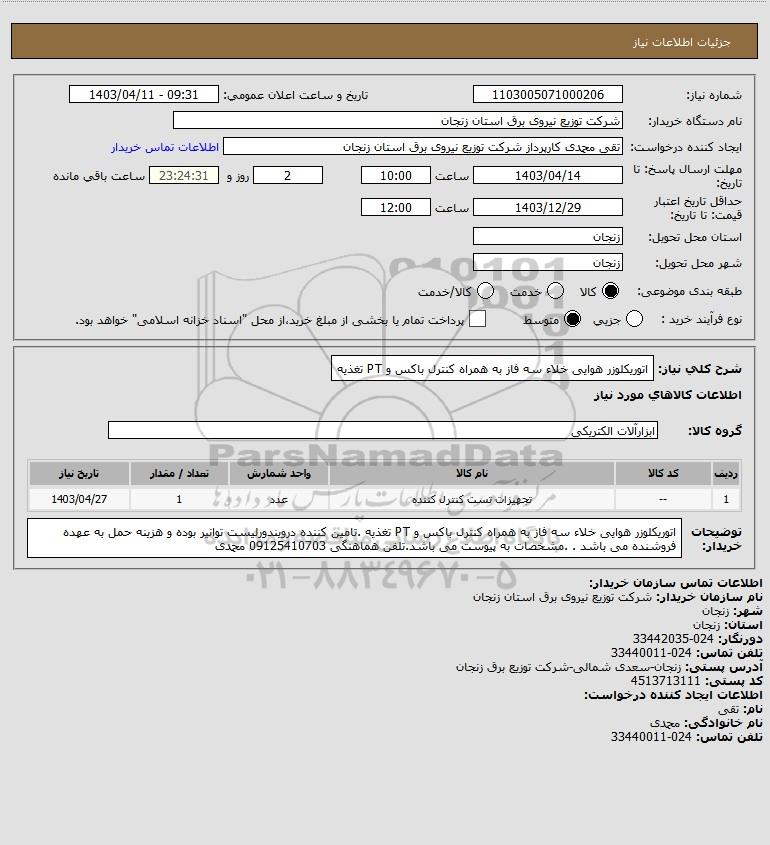 نام دستگاه خریدار:شرکت توزیع نیروی برق استان زنجان