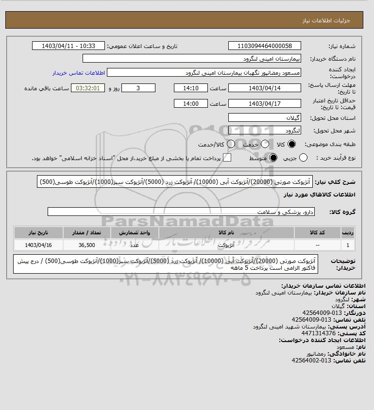 نام سازمان خریدار: بیمارستان امینی لنگرود