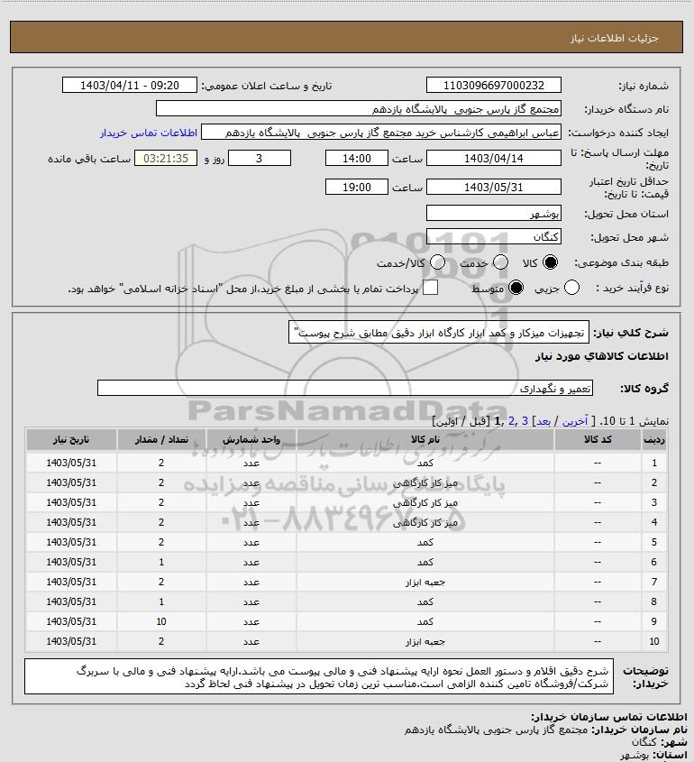 نام سازمان خریدار: مجتمع گاز پارس جنوبی پالایشگاه یازدهم