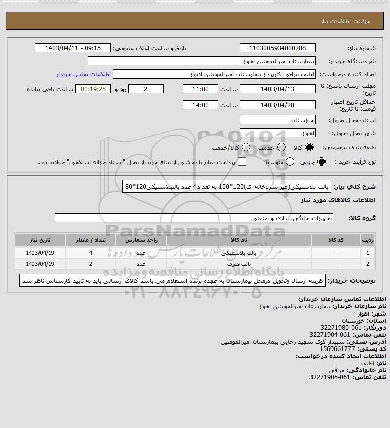 | 1 | -- | پالت پلاستیکی | عدد | 4 | 1403/04/19 |