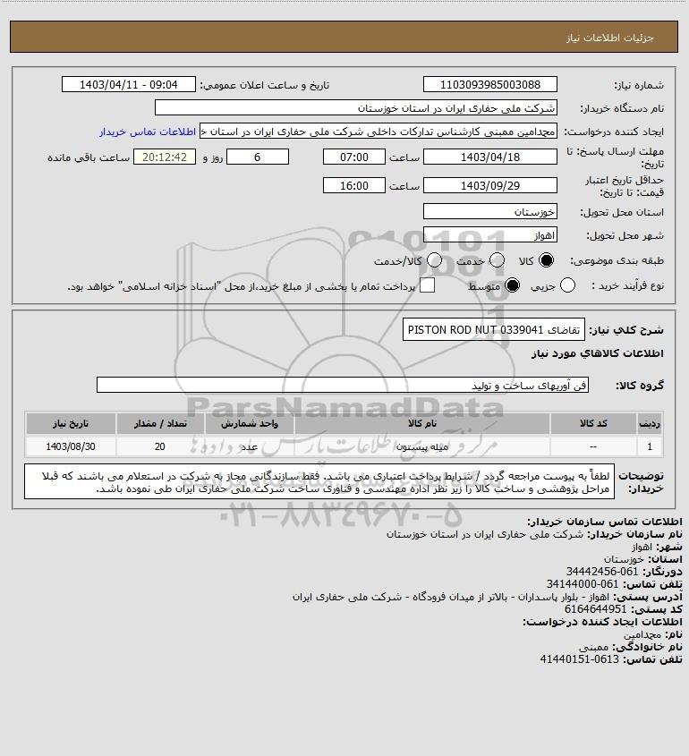 شرح کلی نیاز: تقاضای 0339041 PISTON ROD NUT