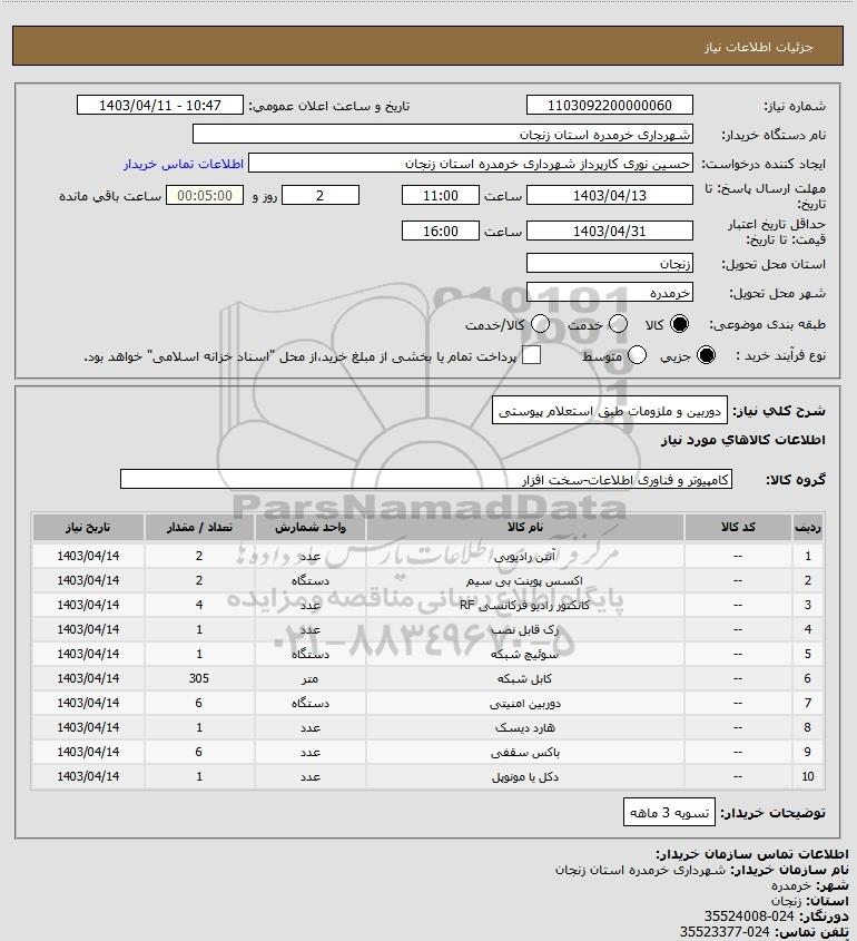 استعلام دوربین و ملزومات طبق استعلام پیوستی, استعلام دوربین و ملزومات طبق استعلام پیوستی
