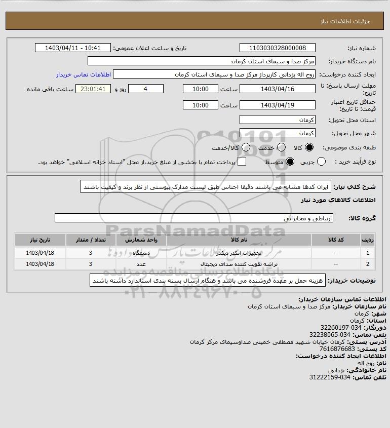 نام دستگاه خریدار:مرکز صدا و سیمای استان کرمان