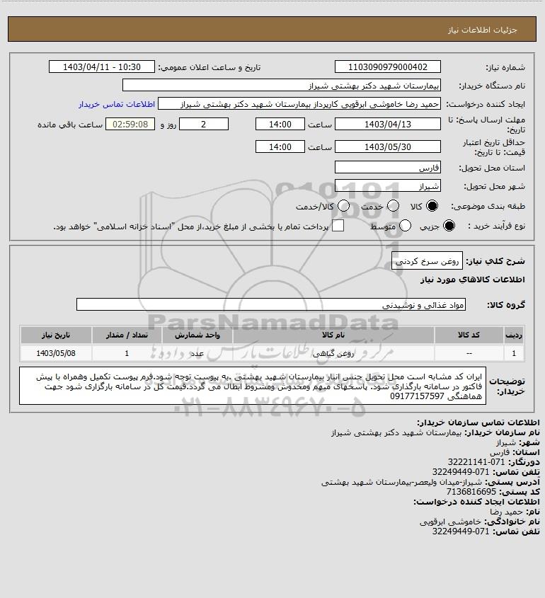 نام سازمان خریدار: بیمارستان شهید دکتر بهشتی شیراز