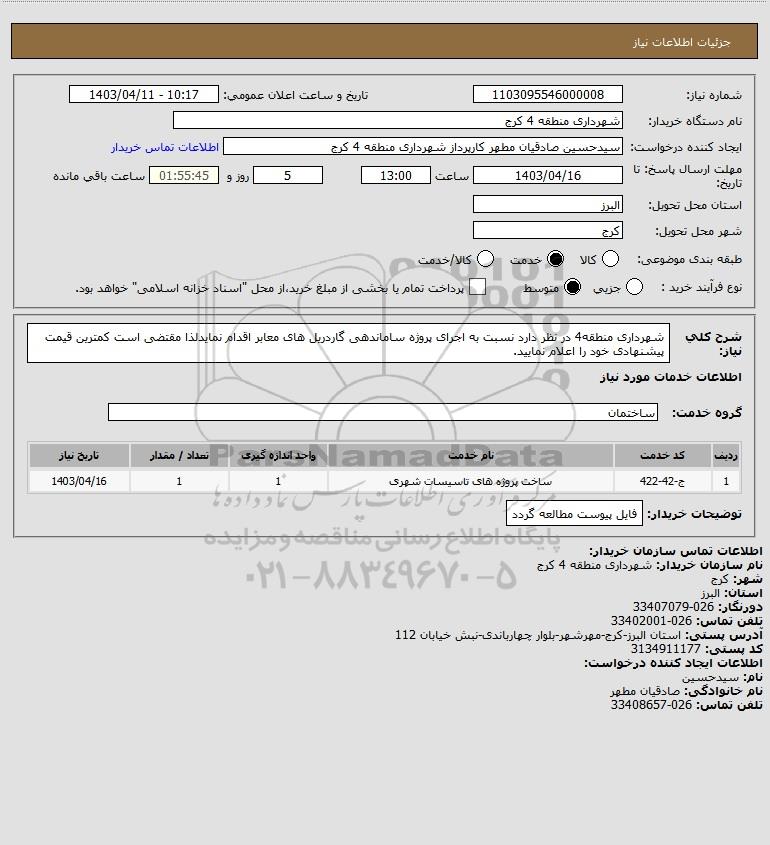 نام دستگاه خریدار:شهرداری منطقه 4 کرج