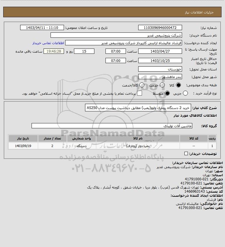 نام دستگاه خریدار:شرکت پتروشیمی غدیر