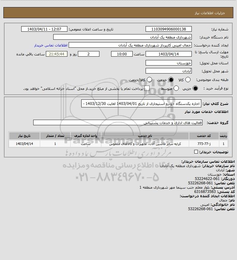 نام دستگاه خریدار:شهرداری منطقه یک آبادان