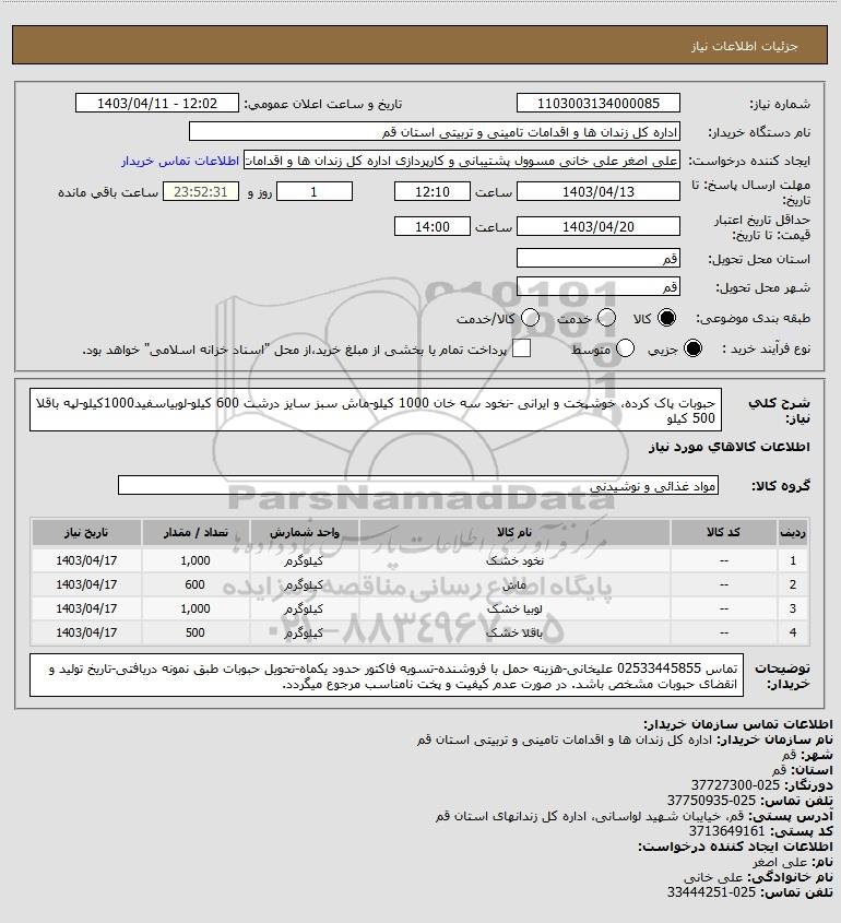 | 4 | -- | باقلا خشک | کیلوگرم | 500 | 1403/04/17 |