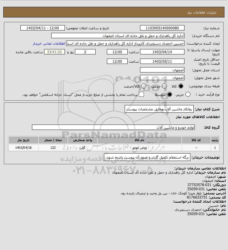 نام دستگاه خریدار:اداره کل راهداری و حمل و نقل جاده ای استان اصفهان
