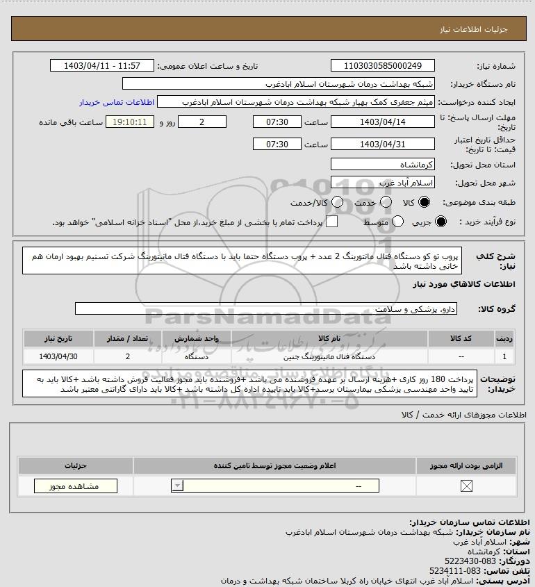 نام دستگاه خریدار:شبکه بهداشت درمان شهرستان اسلام ابادغرب