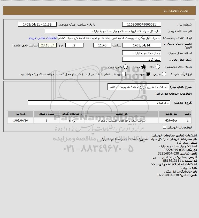 شرح کلی نیاز: احداث جاده بین مزارع چغاده شهرستان فلارد