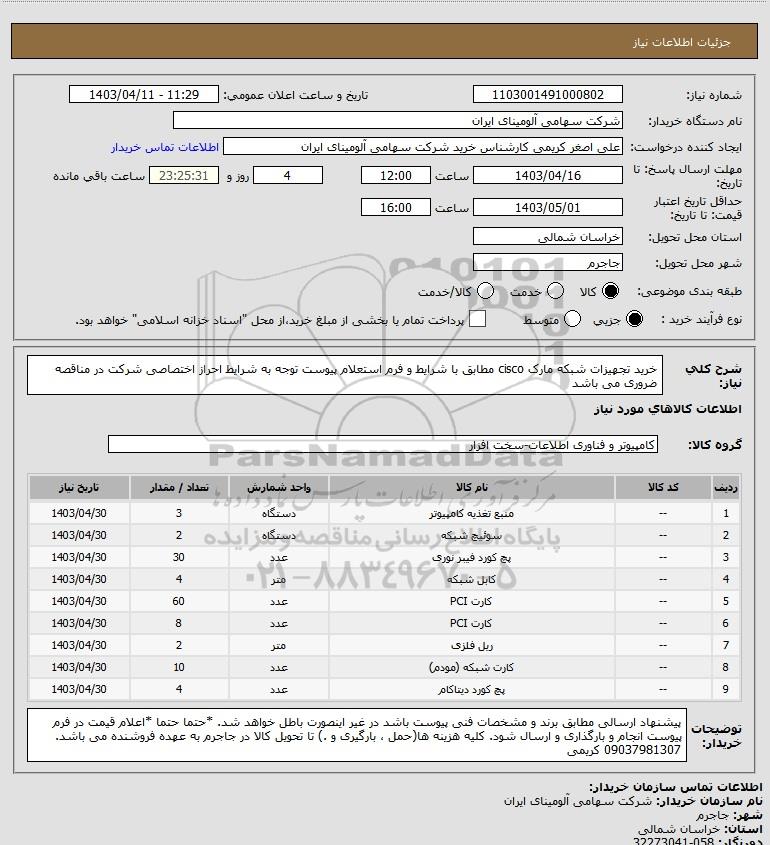 نام سازمان خریدار: شرکت سهامی آلومینای ایران