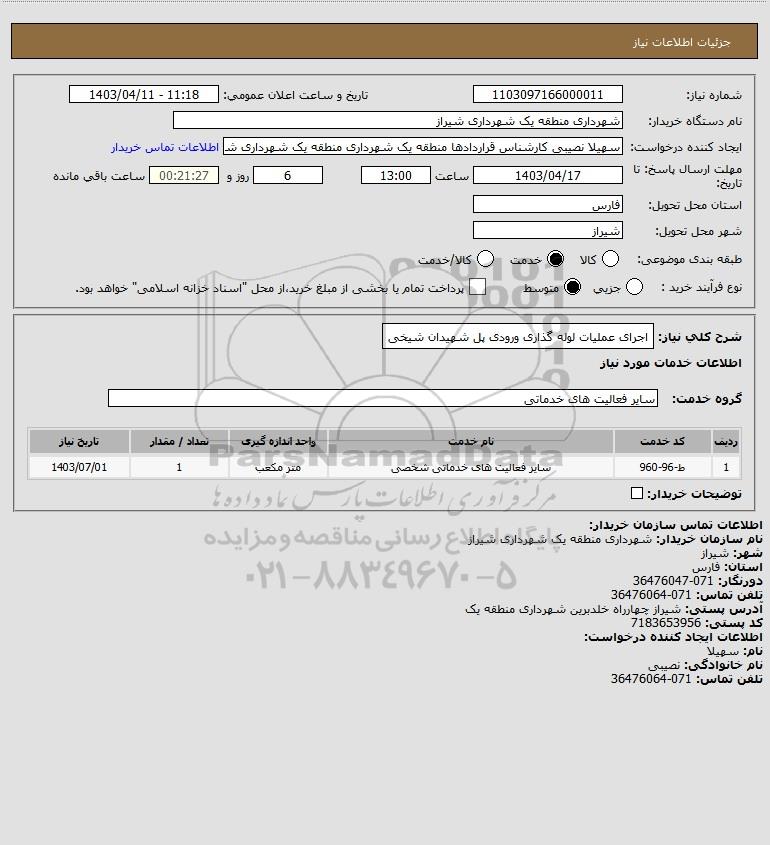 نام دستگاه خریدار:شهرداری منطقه یک شهرداری شیراز