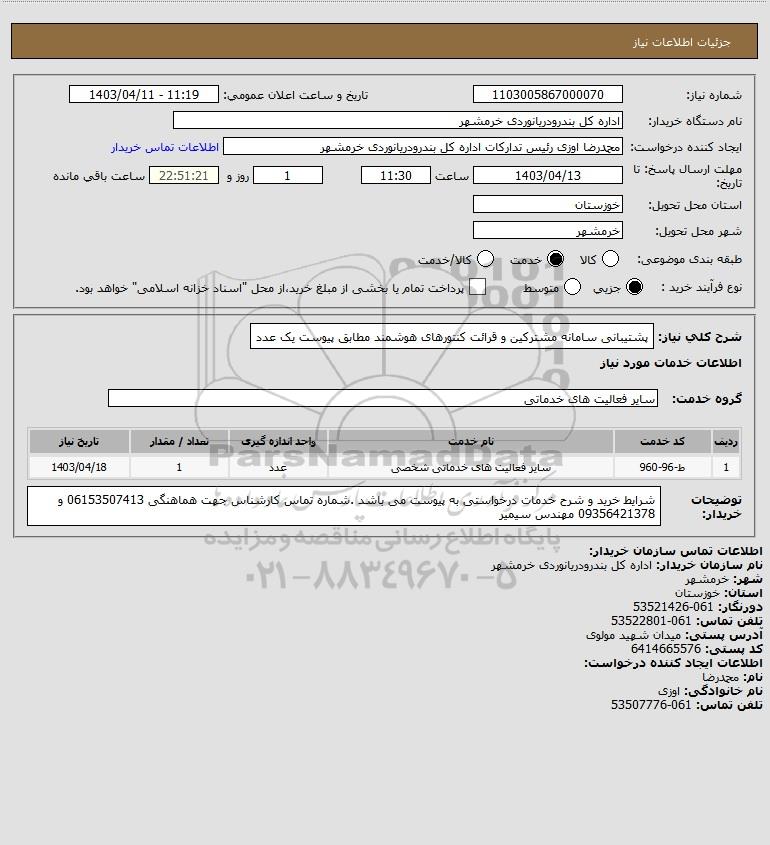 نام دستگاه خریدار:اداره کل بندرودریانوردی خرمشهر