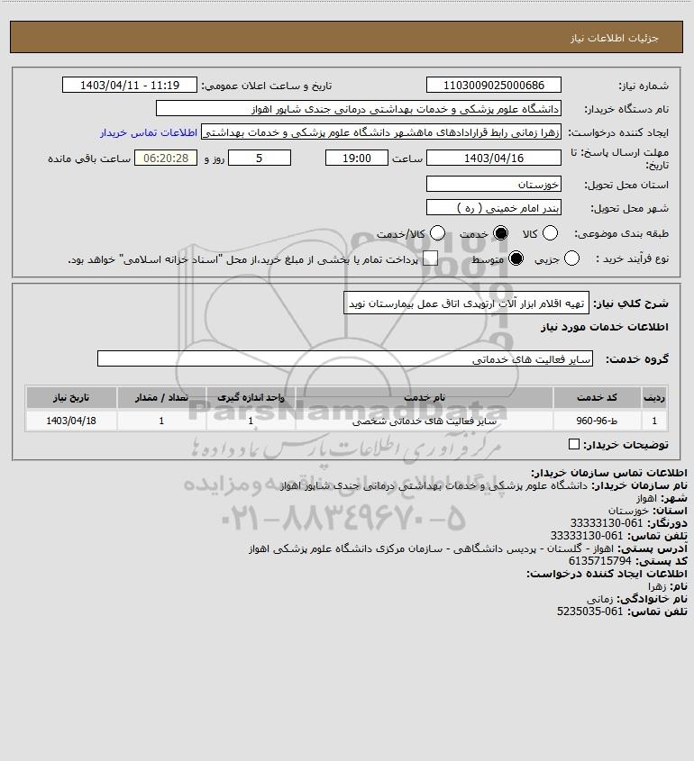 نام دستگاه خریدار:دانشگاه علوم پزشکی و خدمات بهداشتی درمانی جندی شاپور اهواز