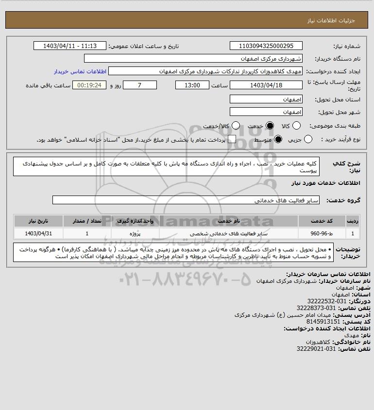 نام دستگاه خریدار:شهرداری مرکزی اصفهان