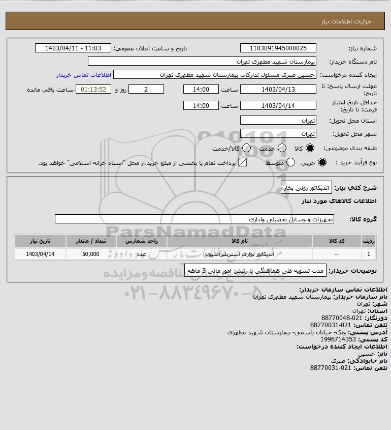 نام دستگاه خریدار:بیمارستان شهید مطهری تهران