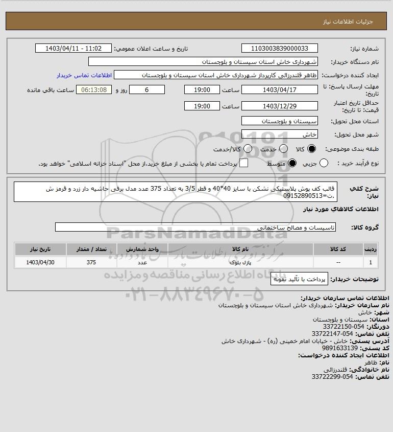 نام دستگاه خریدار:شهرداری خاش استان سیستان و بلوچستان