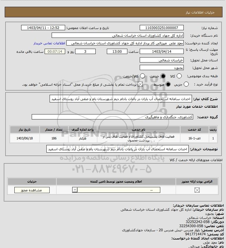 نام دستگاه خریدار:اداره کل جهاد کشاورزی استان خراسان شمالی