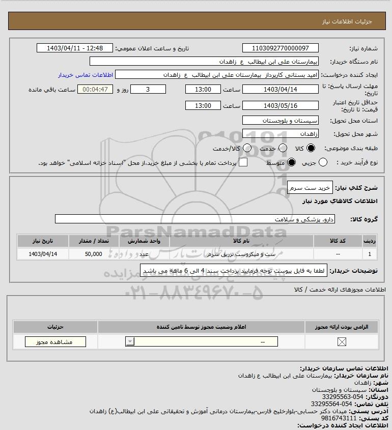 | 1 | -- | ست و میکروست تزریق سرم | عدد | 50,000 | 1403/04/14 |