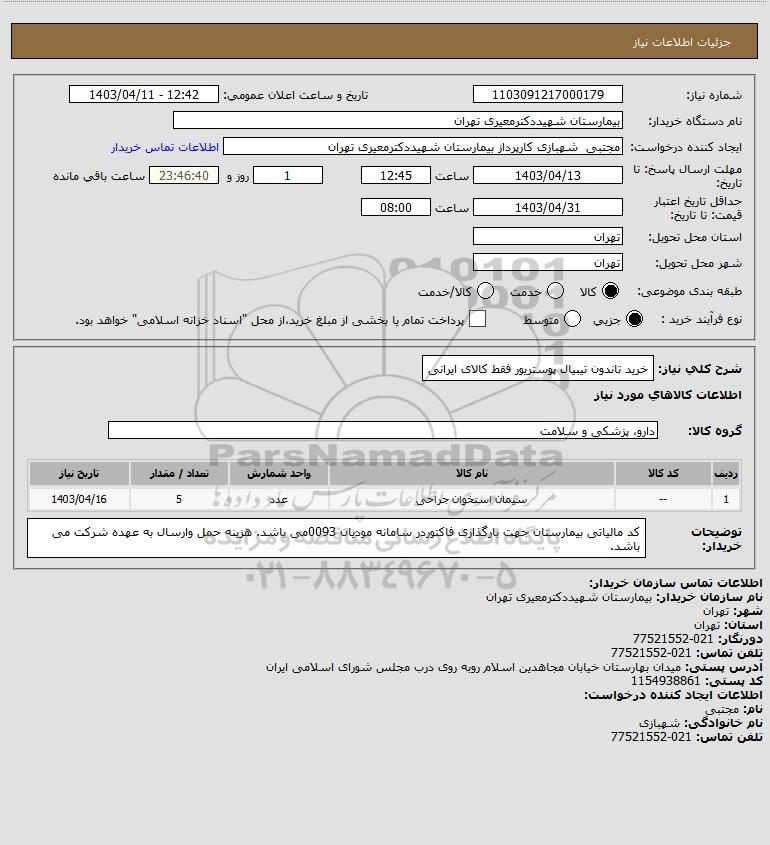 شرح کلی نیاز: خرید تاندون تیبیال پوستریور فقط کالای ایرانی