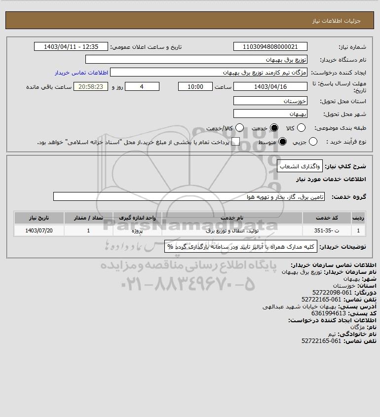 توضیحات خریدار:کلیه مدارک همراه با آنالیز تایید ودر سامانه بارگذاری گردد %