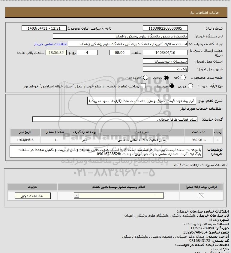 استعلام فرم پیشنهاد قیمت حقوق و مزایا متصدی خدمات (قرارداد سود مدیریت), استعلام فرم پیشنهاد قیمت حقوق و مزایا متصدی خدمات (قرارداد سود مدیریت)