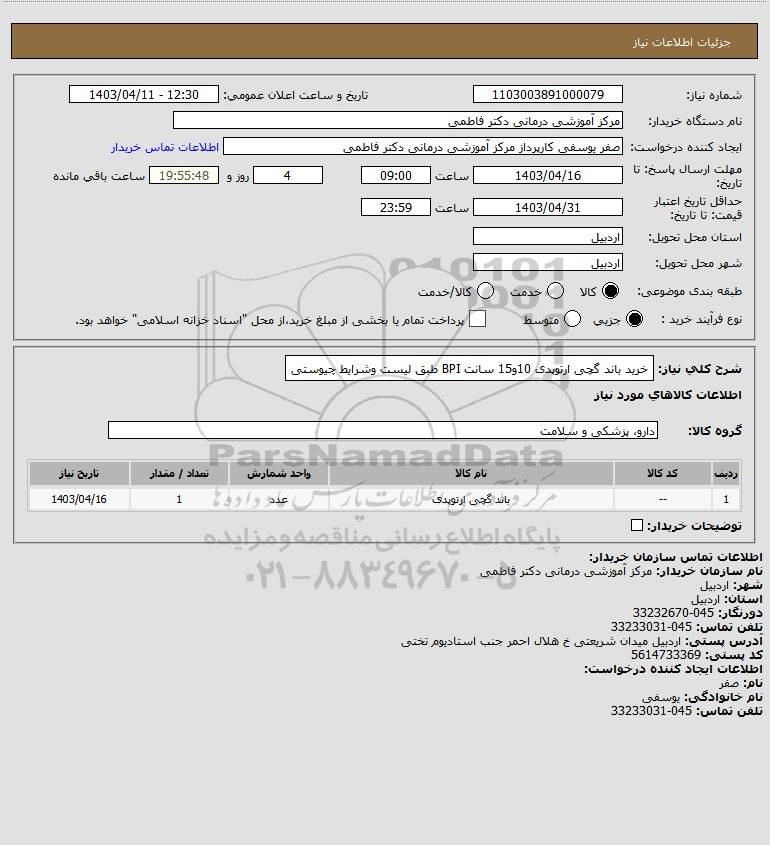 شرح کلی نیاز: خرید باند گچی ارتوپدی 10و15 سانت BPI طبق لیست وشرایط چیوستی