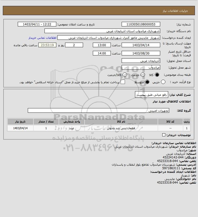 نام دستگاه خریدار:شهرداری میاندواب استان اذربایجان غربی