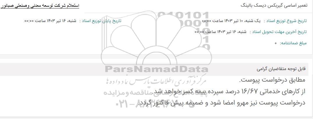 استعلام شرکت توسعه معدنی و صنعتی صبانور