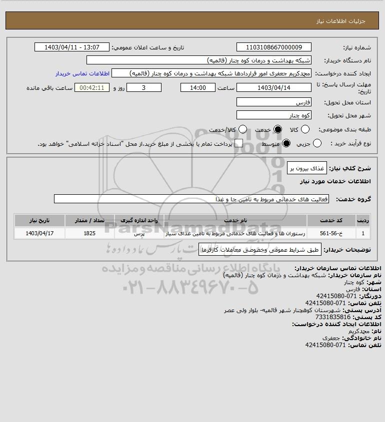 نام دستگاه خریدار:شبکه بهداشت و درمان کوه چنار (قائمیه)
