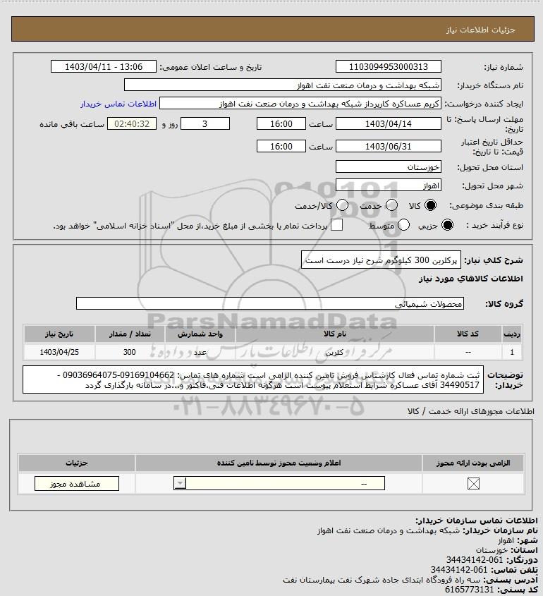 شرح کلی نیاز: پرکلرین