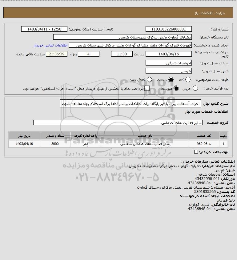 نام دستگاه خریدار:دهیاری گوراوان بخش مرکزی شهرستان هریس