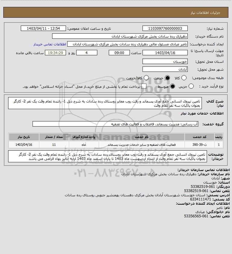 نام دستگاه خریدار:دهیاری رده سادات بخش مرکزی شهرستان ابادان
